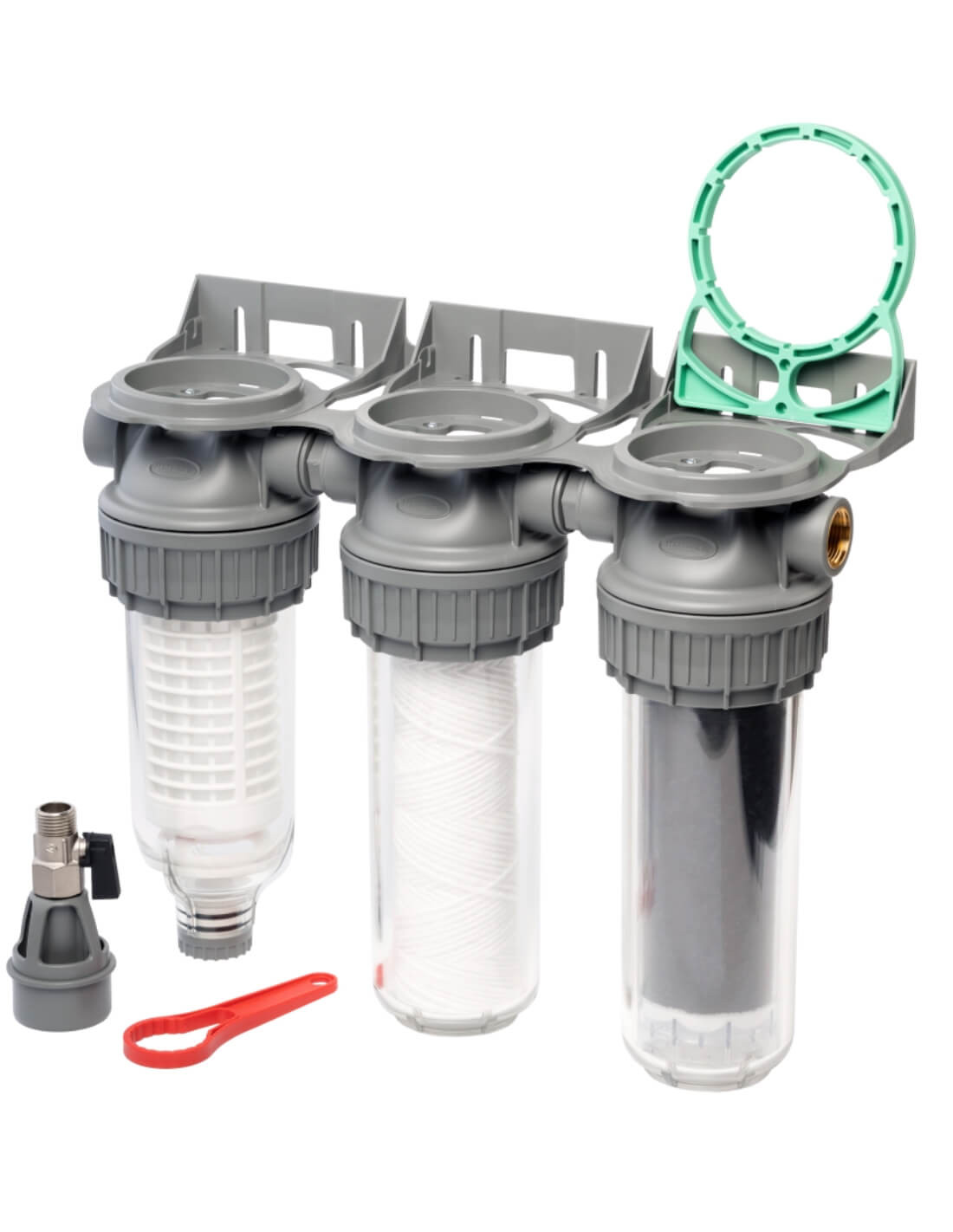 - Le filtre Triplex Multicuves est compatible avec les cartouches standards 9”¾, largement utilisées en filtration domestique :
